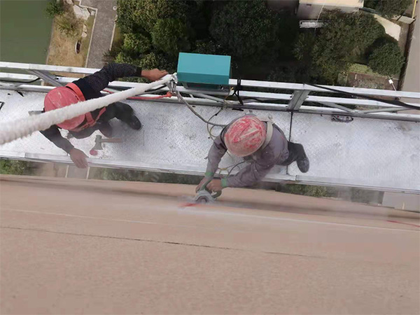 1.基層處理:因該工程是舊樓改造,基層質(zhì)量較差,增加用工量及工藝,采用人工鏟除原有脫落的涂料,保證基層光潔。